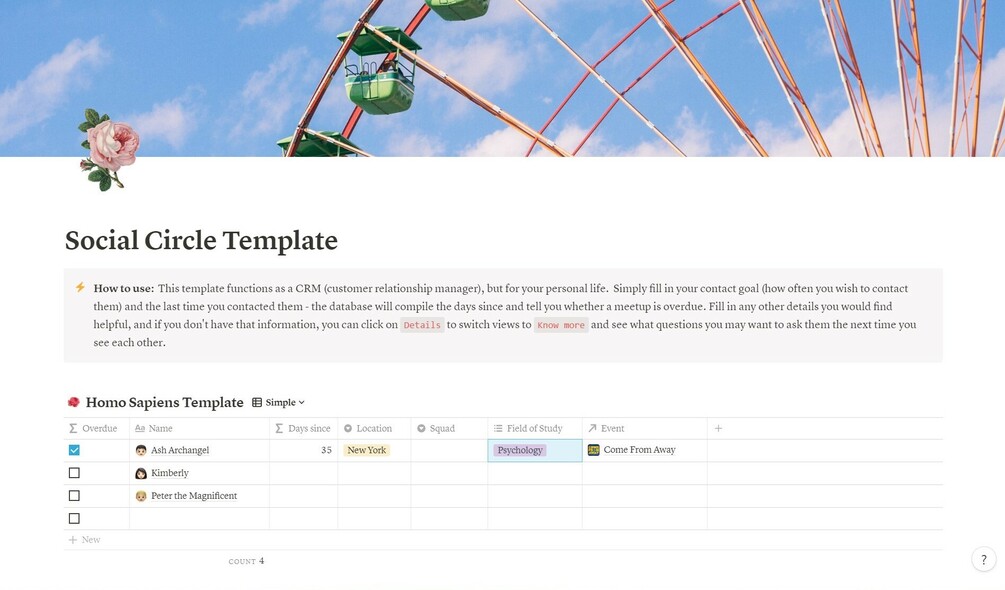 A personal CRM template with an aesthetic touch. Here's a short video about it! https://youtu.be/tmARZBiHVRE